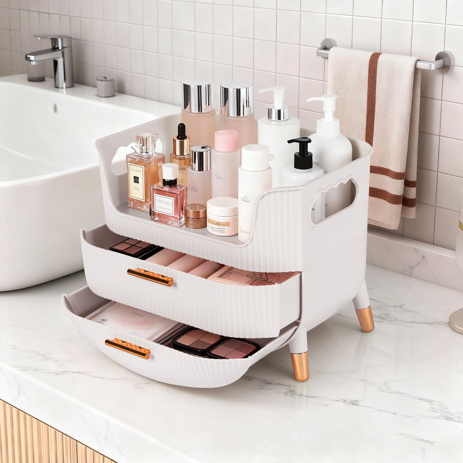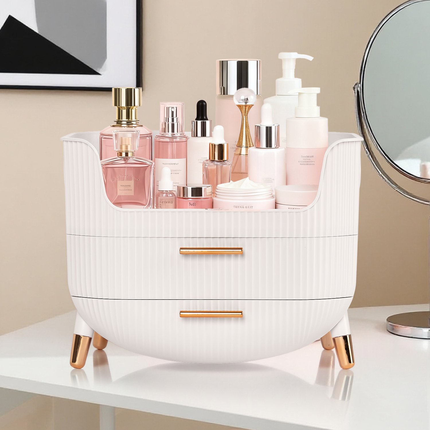 • 【Stunning & Awarded Design】With a stunning curved design (golden-plated supporting legs and drawer handles), this makeup organizer is also a charming ornament for any countertop, vanity, or dresser.