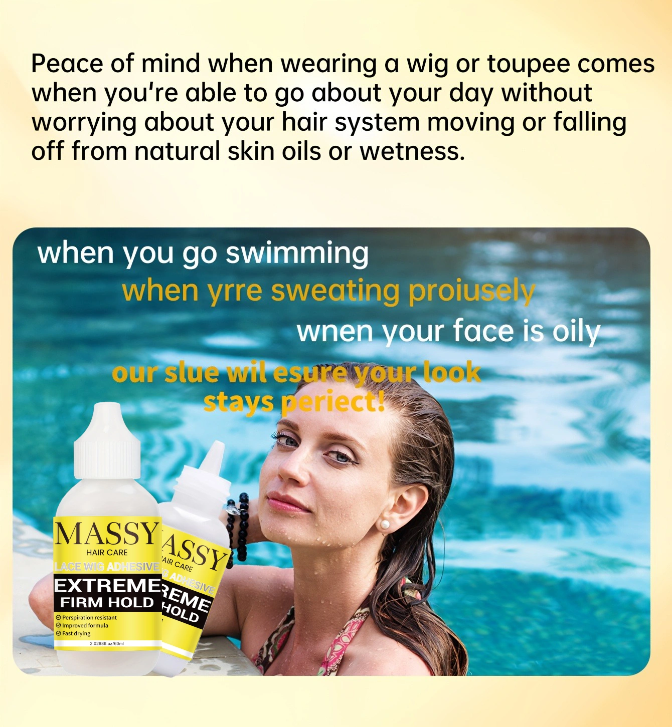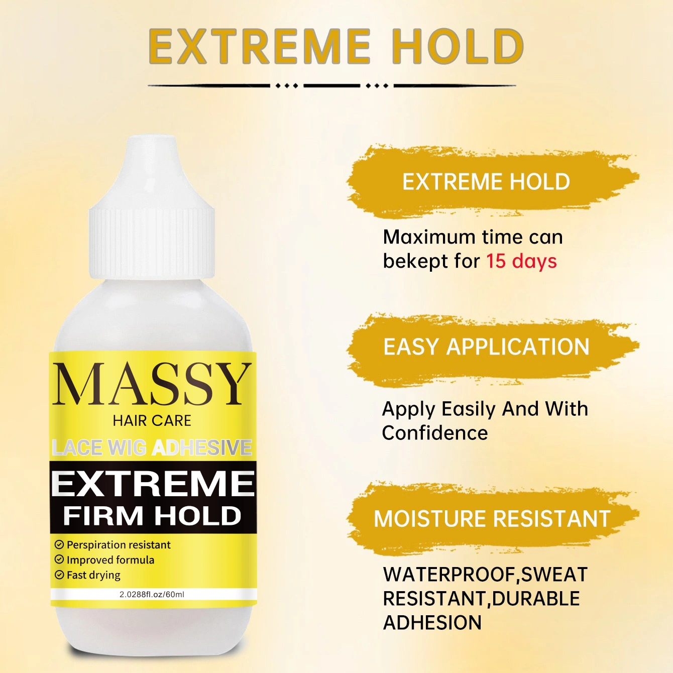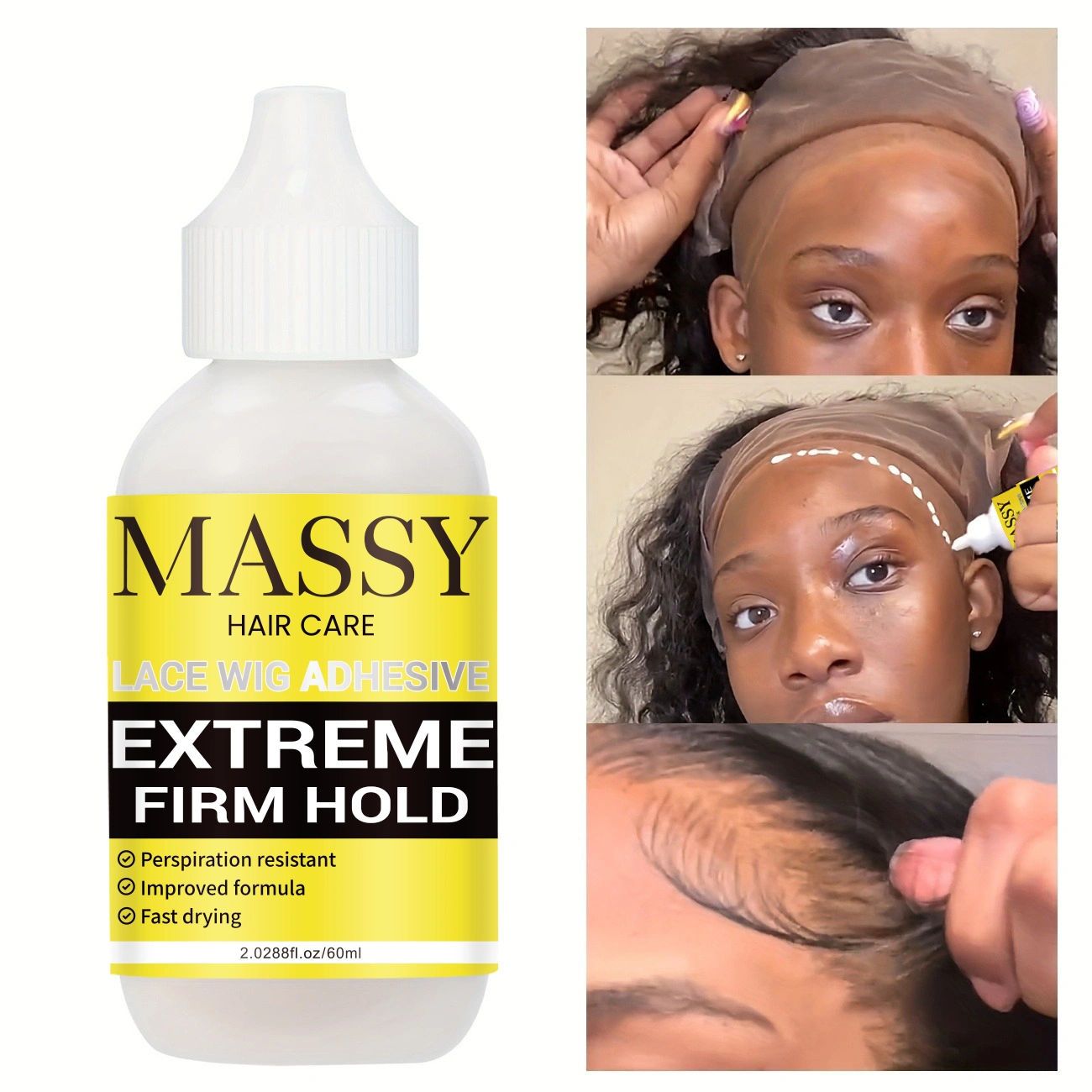 MASSY Waterproof Lace Wig Adhesive – Extreme Firm Hold, Quick-Dry, No Residue, 2.29fl.oz, Invisible Bonding for Secure & Natural Look, Unisex for All Hair Types, Hairpiece Adhesive | Easy Application | Light Beige Formula
